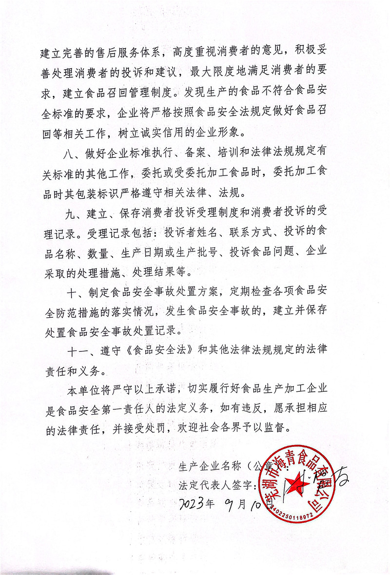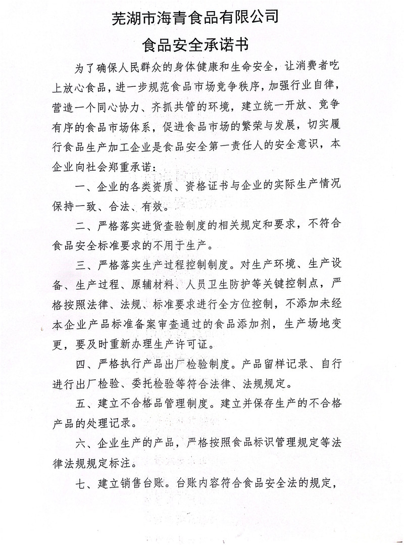 食品安全管理承諾書